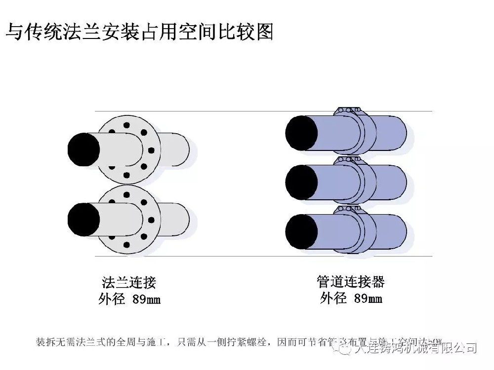 同時(shí)法蘭的缺點(diǎn)也比較明顯,所以承載人們智慧的結(jié)晶而改良出的產(chǎn)品管道連接器就誕生了,管道連接器保留了法蘭的特點(diǎn)同時(shí)對(duì)不足處進(jìn)行了改良,其外殼整體也采用更為耐用的不銹鋼,那么管道連接器到底有哪些特點(diǎn)呢?下面我們就一起來(lái)看看: