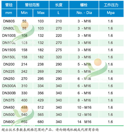柔性多功能管道連接器適用管道范圍大,可連接外徑差異達(dá)24mm的管道。