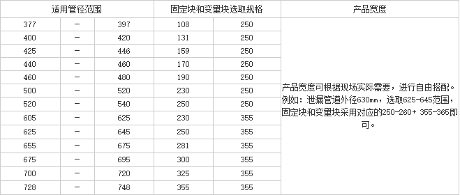 為達到用戶應(yīng)用范圍多樣化,按照我司推薦的上述庫存數(shù)量,既可以滿足各種管徑需求,又可以滿足修補長度不確定的要求,從而達到任何管徑均可隨時從倉庫中提取,再也不會因為庫存不足而發(fā)生焦急等待發(fā)貨的局面。