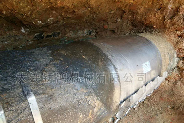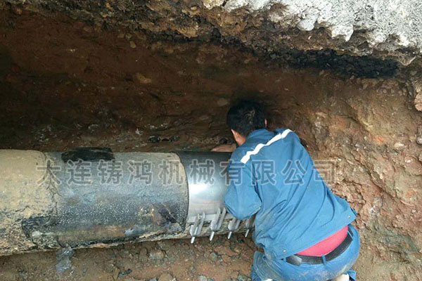 四川攀枝花一處地下管線因施工被破壞,管道材質(zhì)為鋼管,管徑426mm,壓力2公斤左右,管子漏點(diǎn)處有十五公分直徑漏洞,由于是煤氣管,搶修迫在眉睫,此漏點(diǎn)造成周邊區(qū)域停氣,需要快速補(bǔ)漏,使用“鑄鴻”雙卡板式修補(bǔ)器進(jìn)行快速修復(fù),從開挖到回填,整個過程不到三個小時,恢復(fù)送氣!