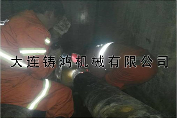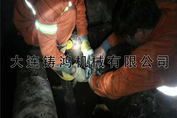 現(xiàn)場情況 : 作業(yè)環(huán)境惡劣,視線差,時(shí)間緊,任務(wù)重。需要盡快恢復(fù)供暖,使用鑄鴻板式修補(bǔ)器進(jìn)行快速修復(fù)。