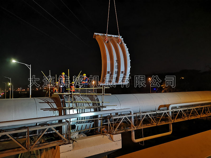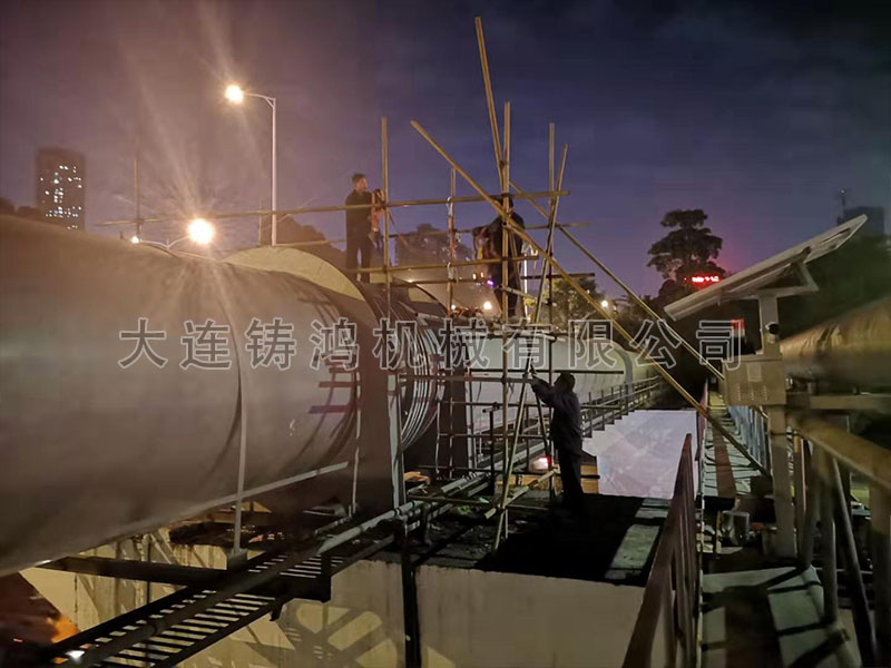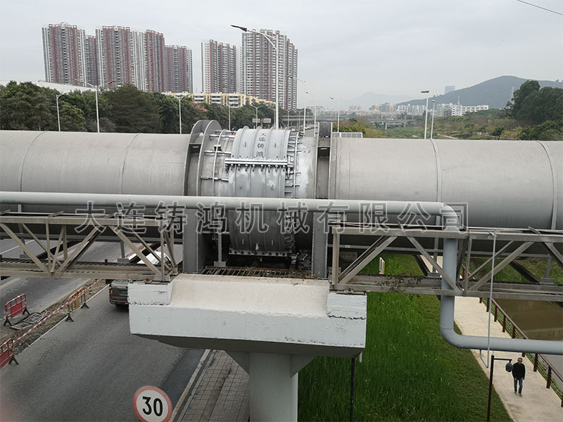 深圳水務(wù)集團(tuán)DN2400鋼管補償器發(fā)生泄漏,之前曾找過多家搶修公司和修補器廠家,都未能修復(fù),鑄鴻機械使用補償器修補器將補償器主體全部包覆,將修補器與補償器及一端管道機械連接定位,修補器的補償結(jié)構(gòu)與補償器的另一端管道連接,實現(xiàn)修復(fù)補償功能。